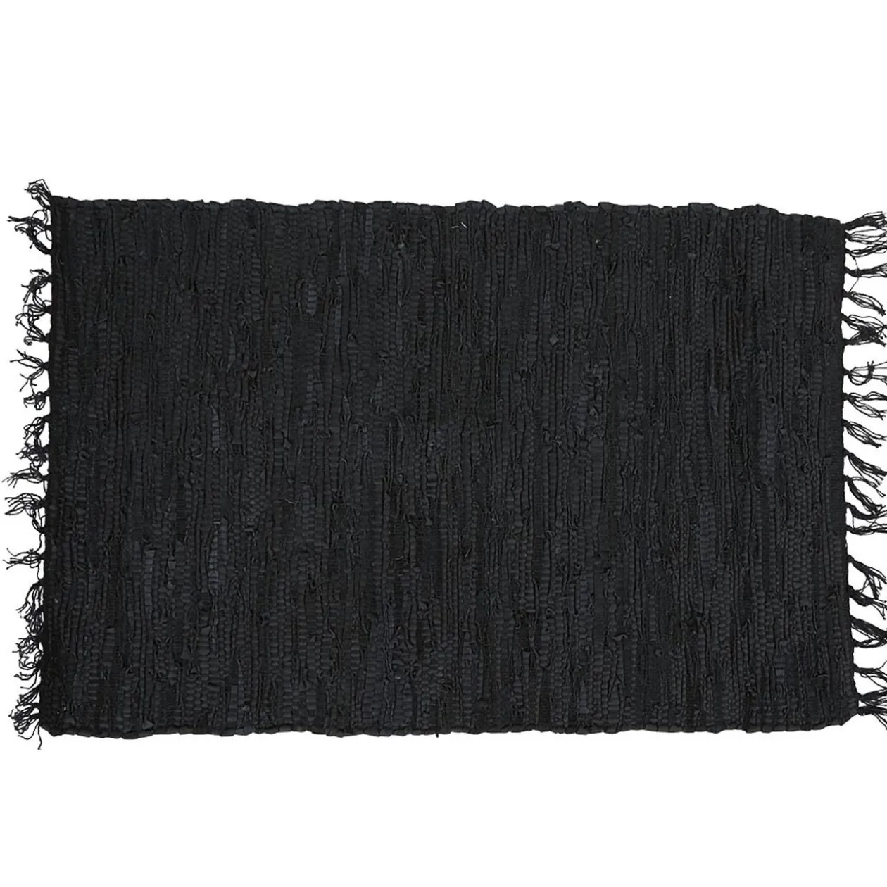 Habillez votre sol et agrémentez votre décoration avec ce tapis à franges Chindi de couleur noire.