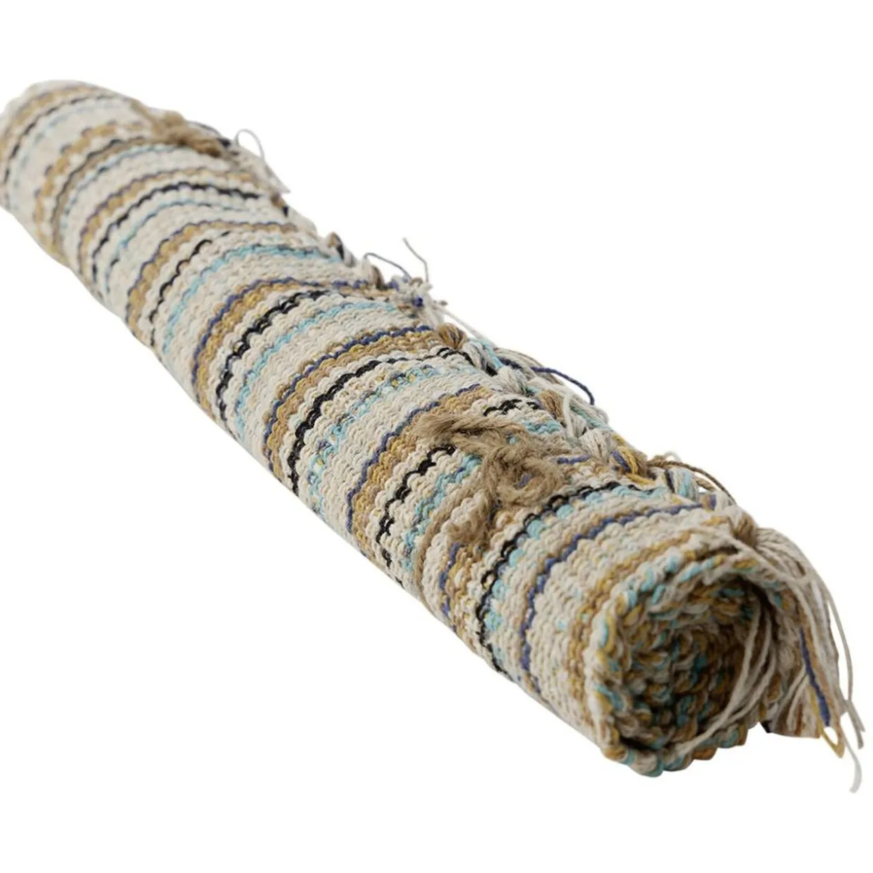 Complétez votre pièce en l’accessoirisant de ce tapis à rayures multicolores, majoritairement en coton.