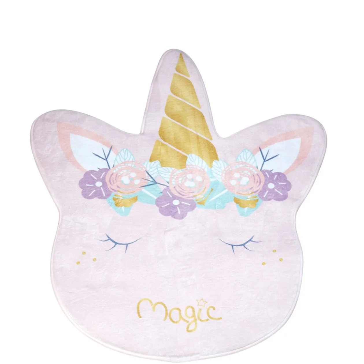 Cet adorable tapis tête de Licorne est parfait pour s’ajouter à la décoration d’une chambre d’enfant fan de cet animal légendaire.