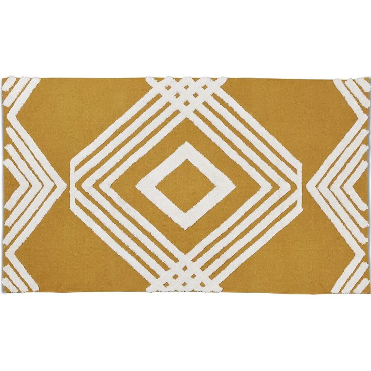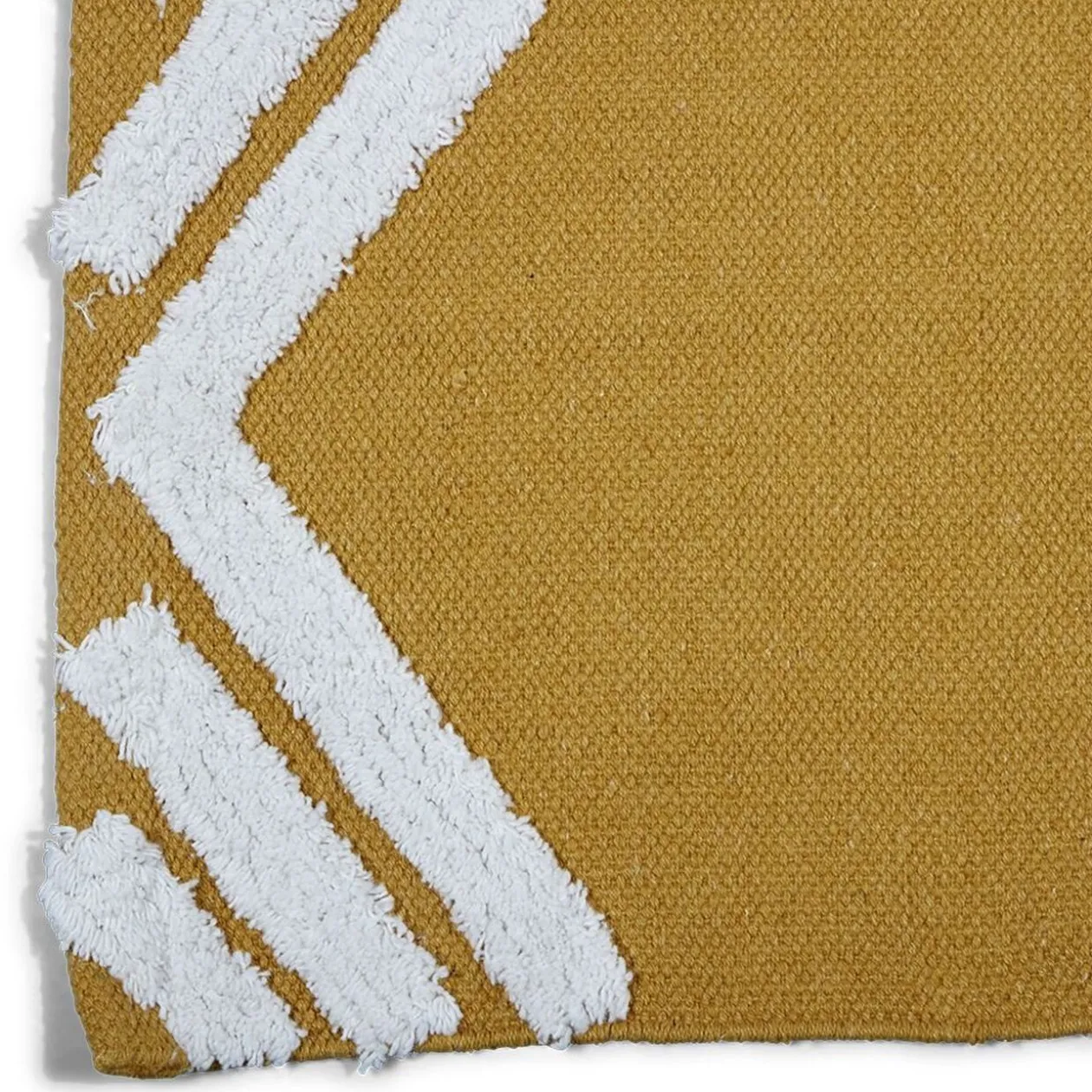 Optez pour ce tapis rectangulaire à motif tufté jaune et blanc pour ajouter une touche lumineuse et cosy à votre intérieur. Idéal pour apporter douceur et chaleur à un salon, une chambre ou un bureau.