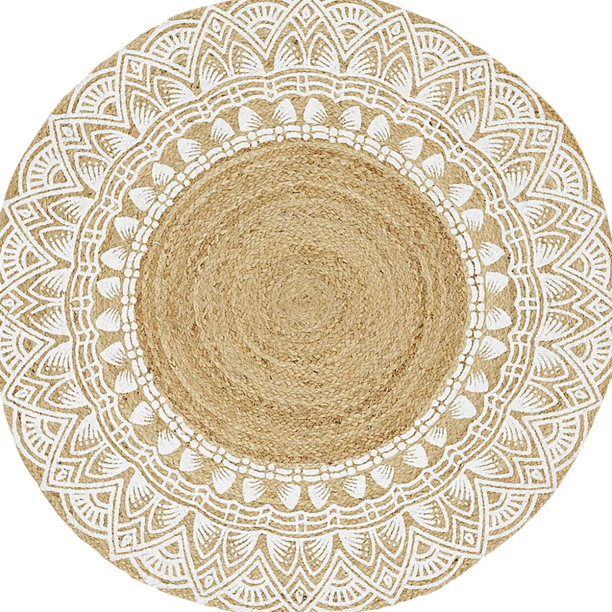 Ajoutez une touche déco à votre pièce avec ce tapis en jute de forme ronde avec motifs blancs sur tout le contour.