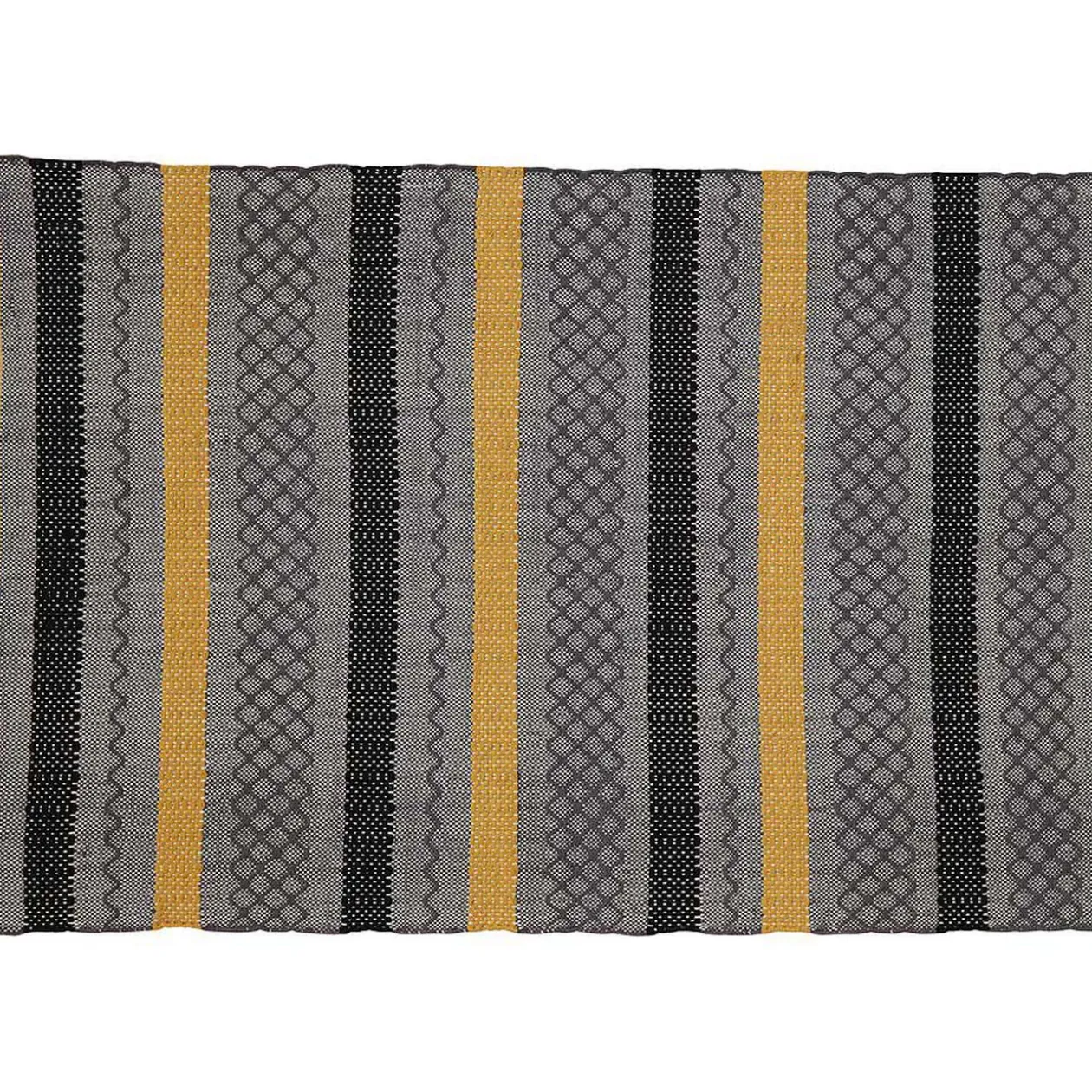 Avec le tapis tissé Colombo, le style scandinave s’installe chez vous ! Cet ouvrage ajoutera à votre pièce une beauté contemporaine qui surprendra vos invités. Idéal pour un style épuré, contemplez ses lignes droites et courbées de couleurs noire et jaune sur fond gris. Dans votre salon ou votre chambre, placez cet élément de décoration avec un mobilier du même style afin d’obtenir un ensemble très actuel, ou bien avec un ameublement rustique pour un effet « mix & match ». Plus qu’un côté esthétique, ce tapis vous permet également d’ajouter chez vous un espace confortable qui irait parfaitement dans votre couloir, devant la porte d’entrée, ou bien dans la chambre de vos enfants afin de leur créer une aire de jeux. La structure étant exclusivement en coton, Colombo dispose d’une bonne densité qui vous garantit un moelleux optimal. Pour une plus grande zone de confort, découvrez également la version plus grande de ce modèle de tapis !