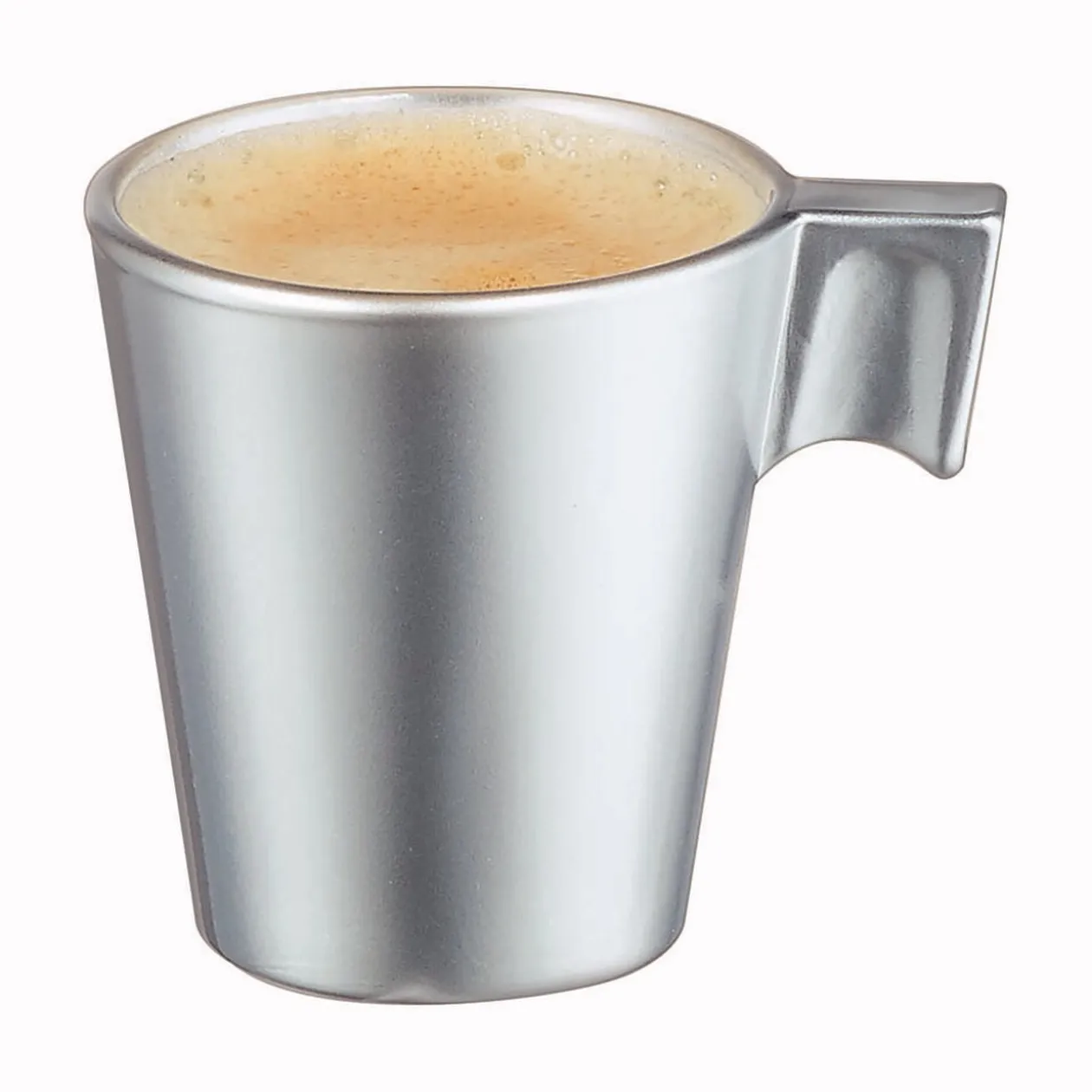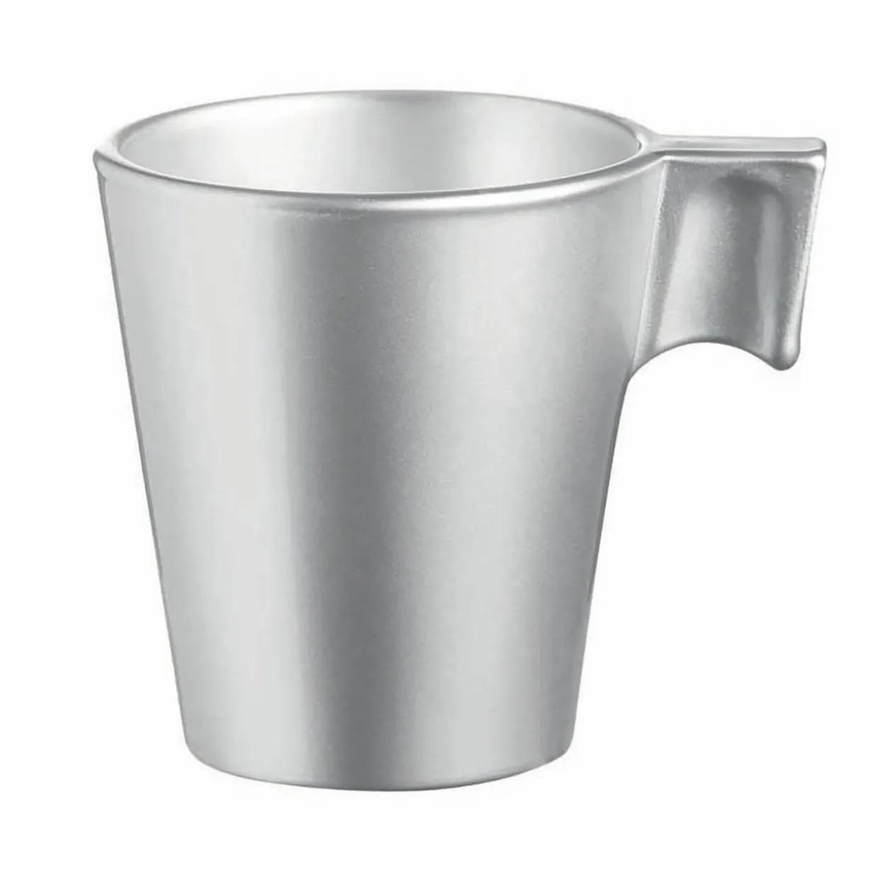 Tasse expresso grise avec intérieur argenté.