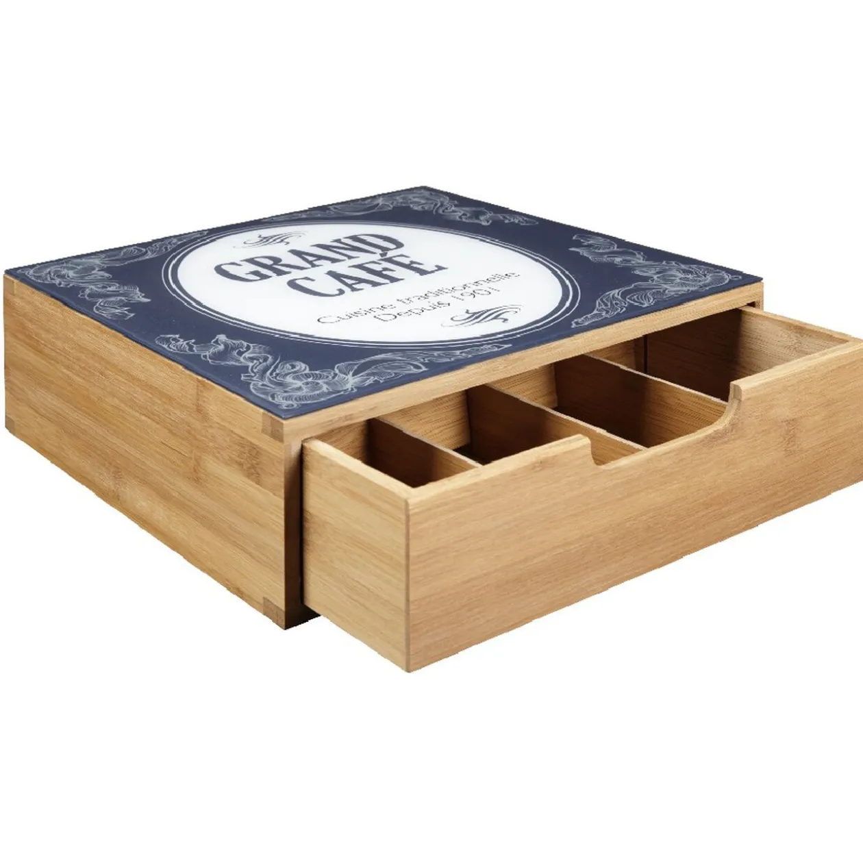 Tiroir à dosettes « grand café », dim. 30x30x10 cm, bambou.