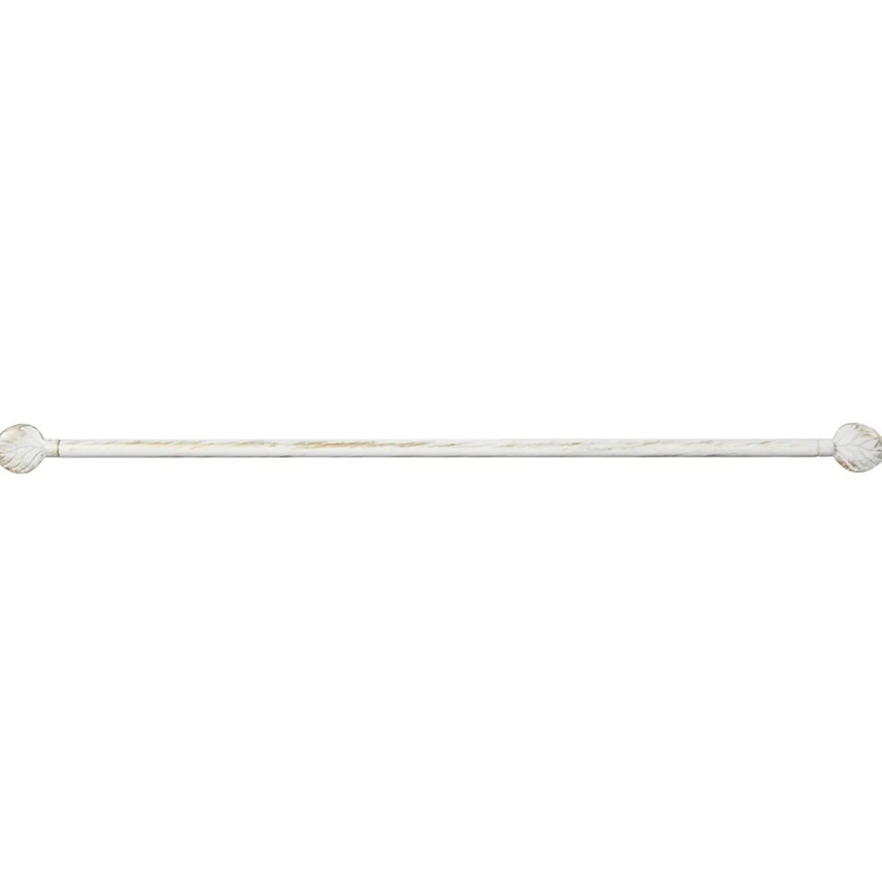 Cette tringle avec embouts en forme de feuille en métal blanc vieilli est extensible de 40 à 60 cm. Idéal pour fixer avec élégance vos vitrages et petits rideaux.