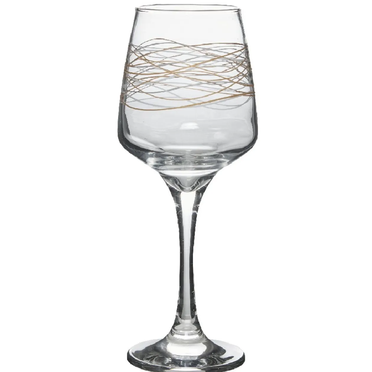 3 jolis verres à pieds d’une contenance de 33 cl motif spirale couleur ocre et blanc.
