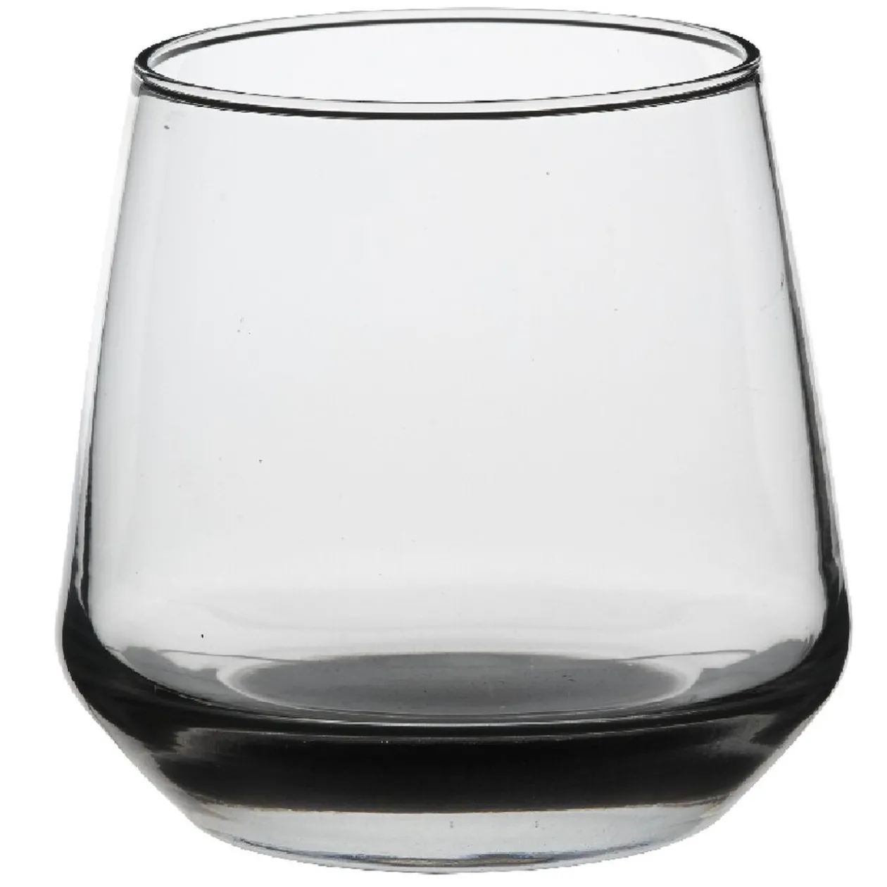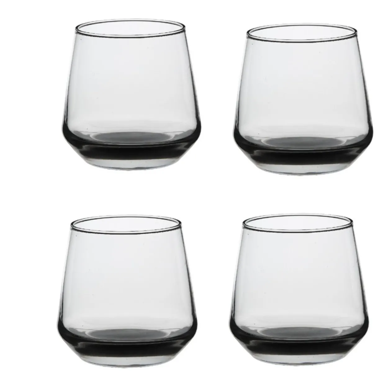 Lot de 4 gobelets en verre transparent avec fond de couleur anthracite.