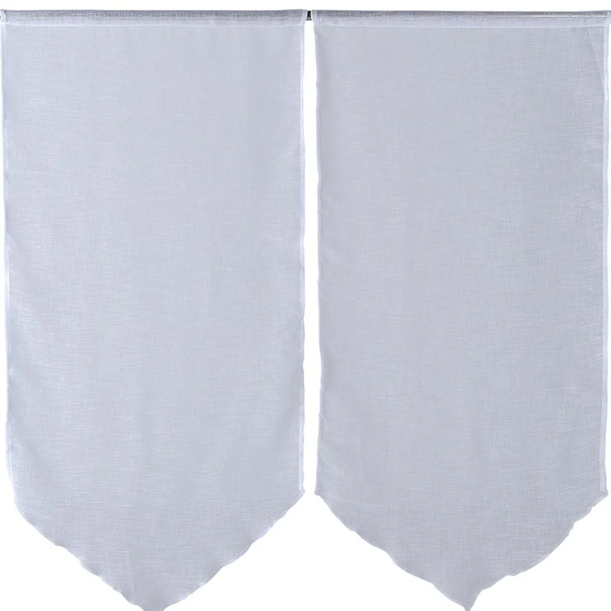 Ce lot de deux vitrages en tissu effet lin uni blanc et finition déco en pointe apportera une belle touche de charme à vos fenêtres. Pratiques et faciles à poser, ils tamiseront la lumière tout en laissant passer le jour.