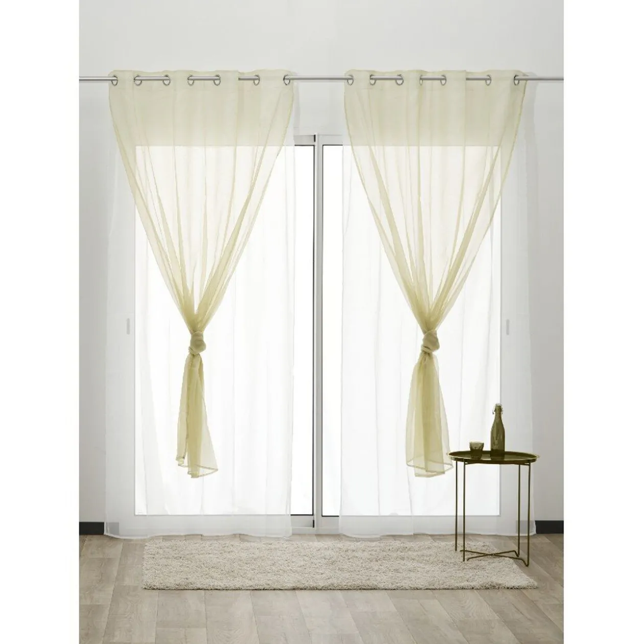 Voilage double bicolore uni de couleur vert anis et blanc.